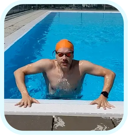 Mit 17 Jahren habe ich mir Kraulschwimmen als Autodidakt beigebracht. Genau deshalb kenne ich die typischen Hürden, die Erwachsene im Wasser haben: Anspannung, Atemstress, fehlendes Wassergefühl und diese automatischen Bewegungsmuster, die unter Druck immer wieder auftauchen.